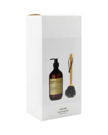 Flot gaveæske med opvaskebørste og opvaskemiddel fra Meraki.